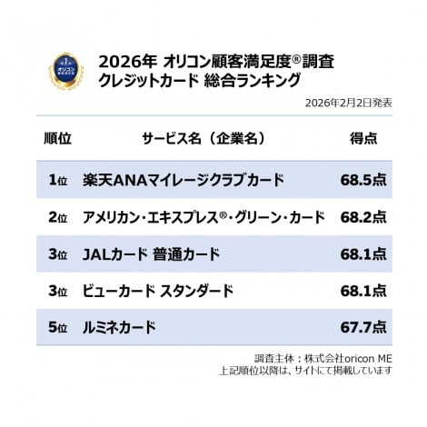 【おすすめのクレジットカードランキング TOP5】オリコン顧客満足度調査(C)oricon ME inc.