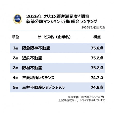 【おすすめの新築分譲マンション 近畿ランキング TOP5】オリコン顧客満足度調査(C)oricon ME inc.