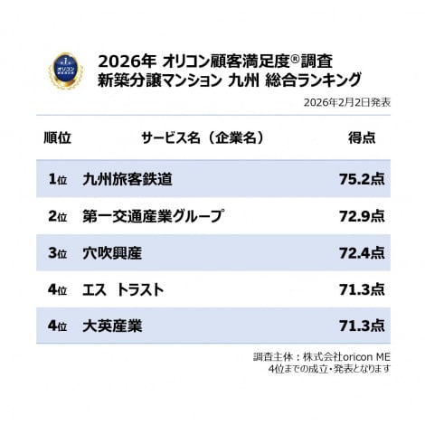 【おすすめの新築分譲マンション 九州ランキング TOP5】オリコン顧客満足度調査(C)oricon ME inc.