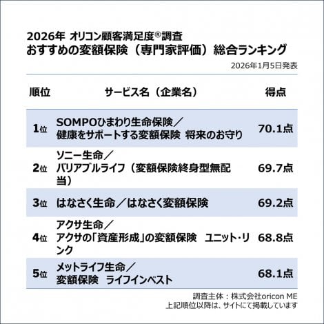 【専門家(FP)が選ぶおすすめの「変額保険」ランキング TOP5】オリコン顧客満足度調査(C)oricon ME inc.